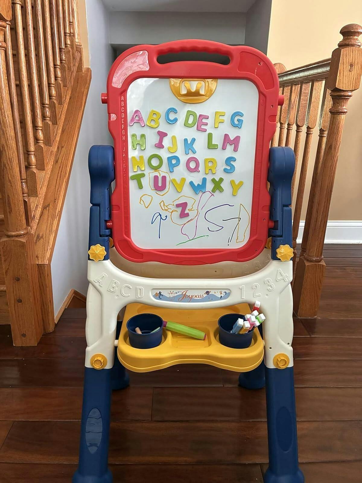 - 【Ideal for Inspiring Creative Learning】--This JOYOOSS Kids Art Easel will provide hours of creative activities such as drawing, coloring, painting, alphabet and math games, which are both fun and educational. This children's magnetic board - adjustable magnetic double-sided drawing board whiteboard and blackboard dry erase board - encourages creative learning.