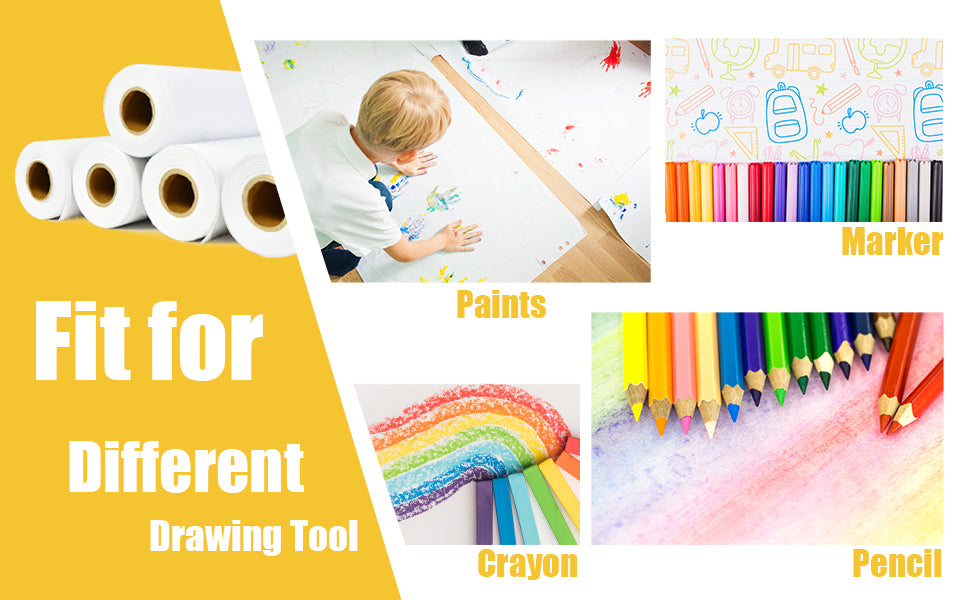 - 【CUSTOMIZABLE DRAWING PAPER FOR KIDS】 The roll of paper for kids art is at your disposal which means you can cut it down to any shape or size. It can be used for paper cutting, banner or gift wrapping in any occasion, such as home and school.