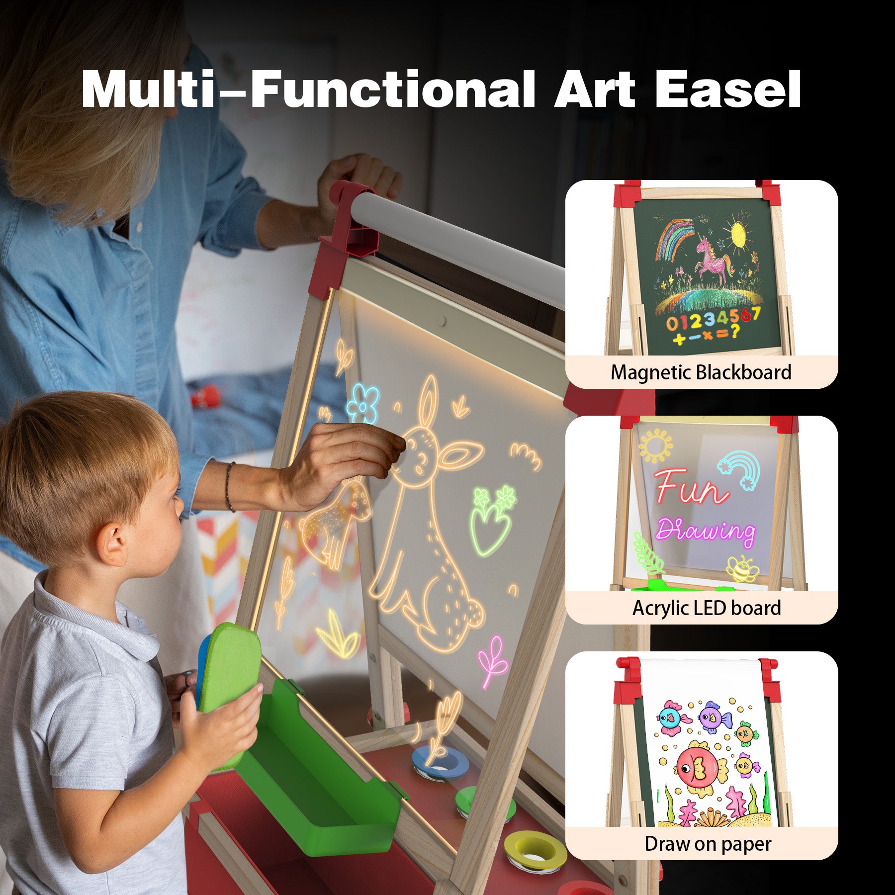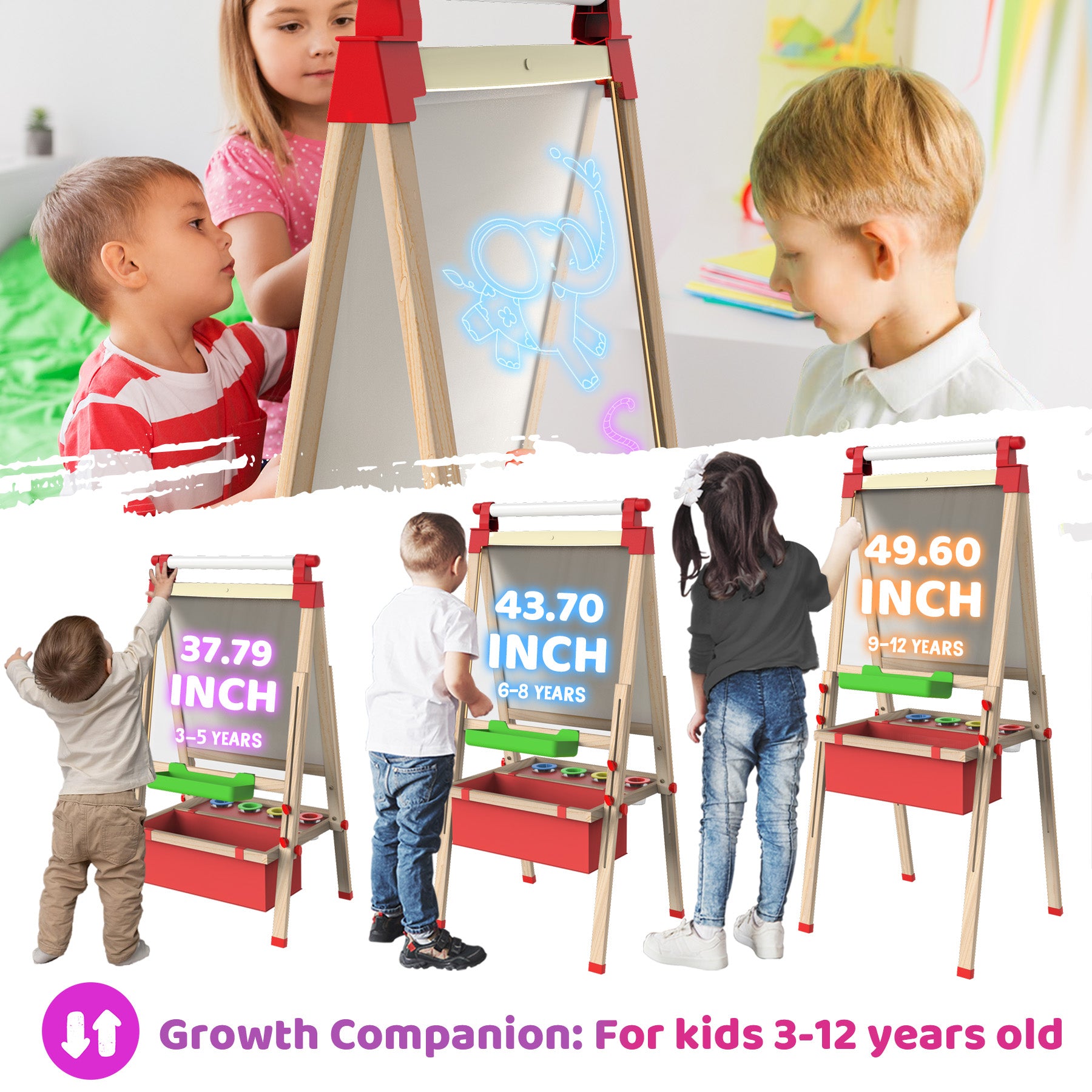 JOYOOSS LED Easel for Kids Light Up Wooden Drawing Easels with Paper Roll