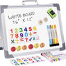 - 【PORTABLE DESKTOP DRY ERASE BOARD】 The size of the mini whiteboard is 16” x 12” with metal handle, lightweight and portable for carrying around. Both sides are magnetic and easy to wipe clean without stain. Double-sided dry erase board provide more writing space.